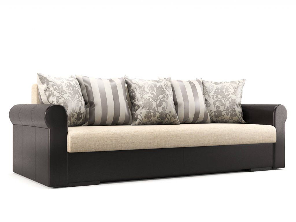Каркас этого прямого дивана изготовлен из массива дерева, высокопрочной древесно-стружечной плиты (ДСП) и фанеры, а сиденье и спинка с «начинкой» из мебельного пенополиуретана (ППУ) хорошо выдерживают частые трансформации и легко адаптируются к контурам сидящего человека. Комбинированная обивка – экокожа на каркасе и рогожка на сиденье – выглядит стильно и неприхотлива в уходе. Достаточно периодически протирать основание и подлокотники мягкой тканью с чистящим средством и иногда пылесосить сиденье.