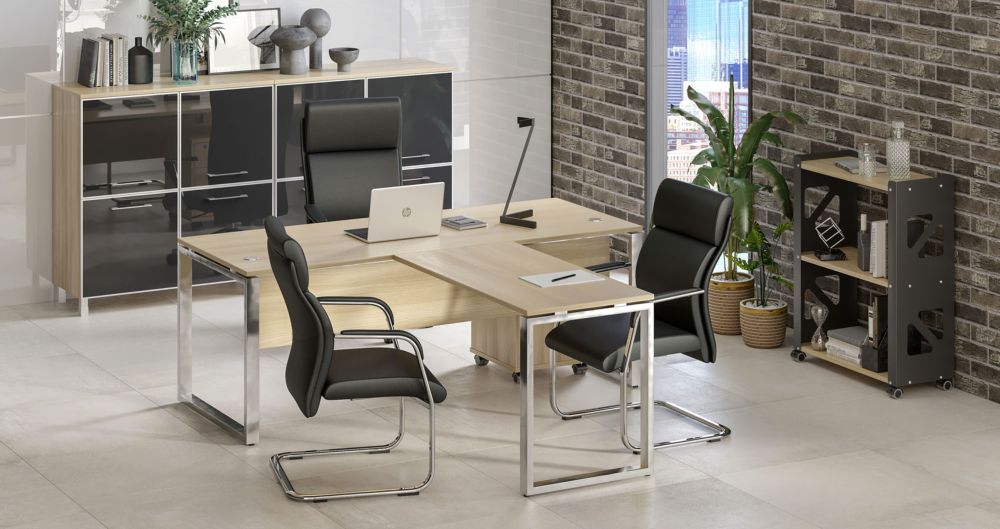 Стол рабочий руководителя с опорной тумбой левый METAL SYSTEM DIRECT БГ.СРТ-5.8 Пр Акация Лорка