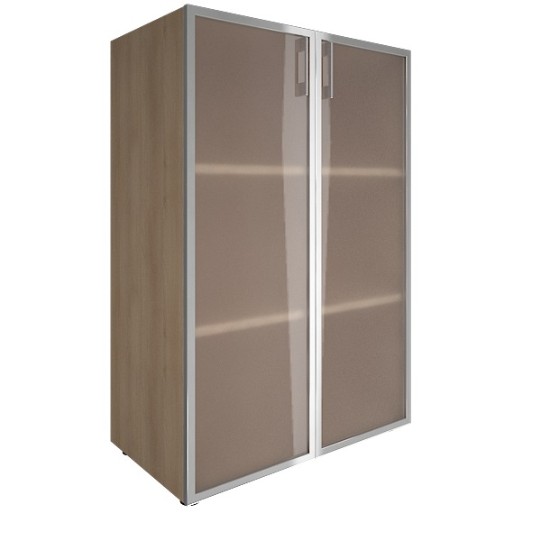 Шкаф книжный средний со стеклом в раме без топа YALTA LT-ST 2.4R Снежная Платина
