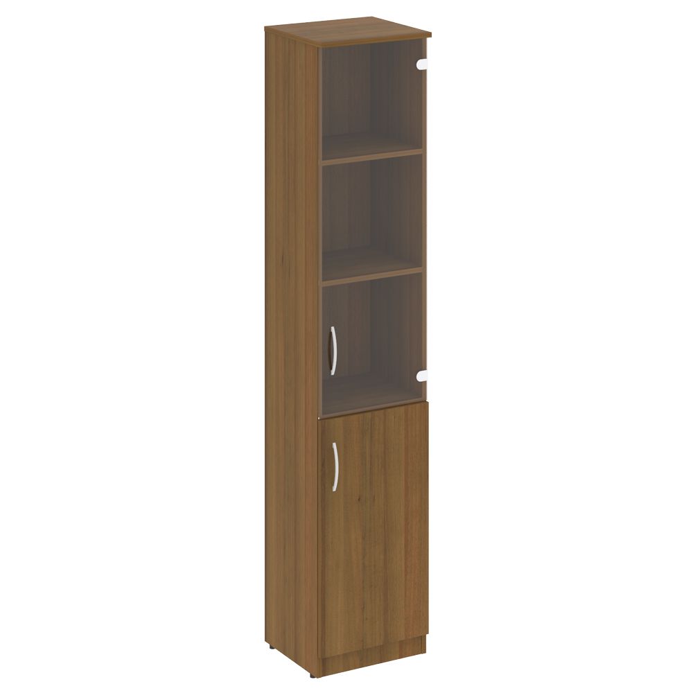 Шкаф высокий узкий правый (1 низкая дверь ЛДСП, 1 средняя дверь стекло) NOVA S В.СУ-1.2 R Орех Гварнери