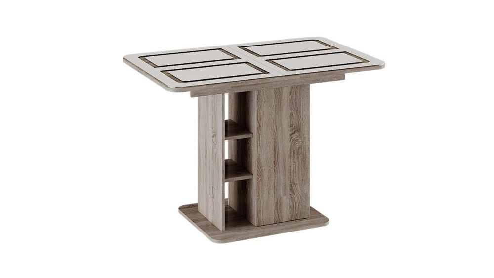 Стол обеденный Мюнхен тип 1 Дуб Сонома трюфель/Стекло бежевое с рисунком