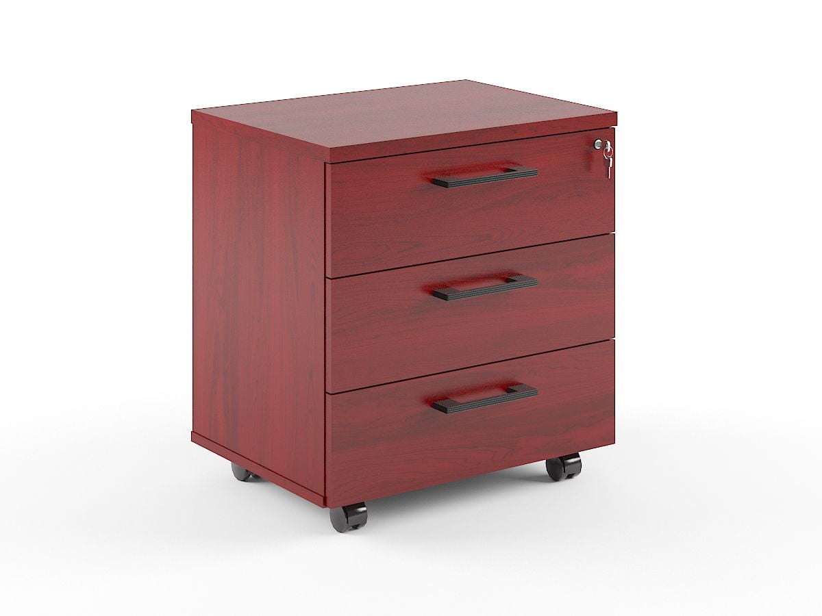 Тумба мобильная комплектуется центральным замком на 3 ящика и доводчиками,колесными опорами со стопором и без. Материал ЛДСП.